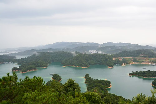 游萬綠湖風景區有兩種方式可以選擇,一種是乘船在湖中游覽,與湖水近距離接觸體會她的秀氣;另一種是爬岸邊的山,從上而下領略她的大氣!我們選擇了后者---鏡花緣景區,入口就在萬綠湖碼頭左手。