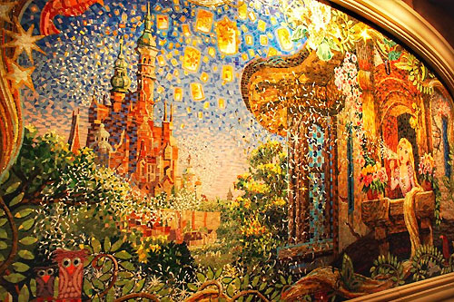 沒走幾步迪士尼城堡就映入眼簾,絕對園區中心地帶!城堡內飾,談不上金碧輝煌,但足夠驚艷,神秘多彩~