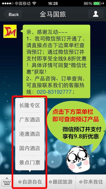 方法三:金馬國旅官方微信